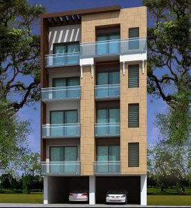 This 4-floor project, on a 250 sq. yard plot near M Block GK 2 market, offers 3 BHK units with attached toilets, spacious balconies, modular kitchens, premium flooring, and split A/Cs in all rooms. It includes stilt parking, a terrace garden for the third floor, and roof access for maintenance.